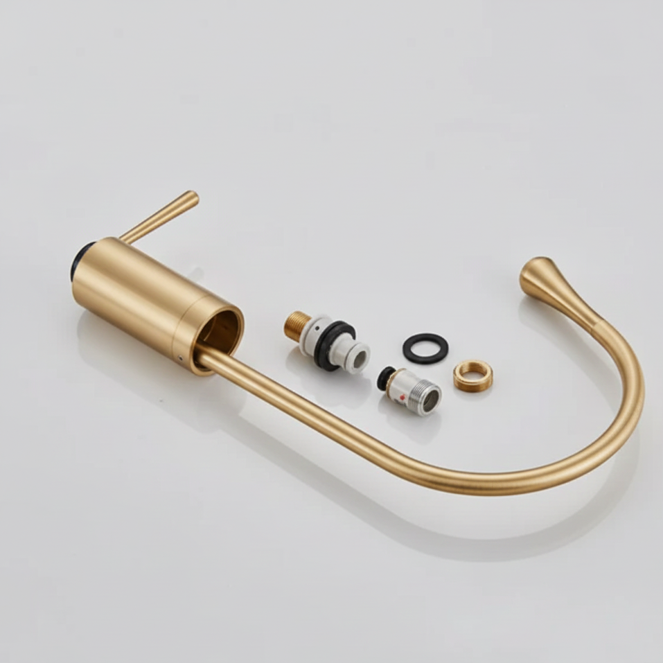 Apportant une touche artistique et raffinée, ce robinet de lavabo en laiton doré brossé séduit par son design arrondi et sa silhouette inspirée d’une goutte d’eau. Son bec rotatif à 360° offre une maniabilité exceptionnelle, tandis que son mitigeur en forme de tige permet un réglage précis du débit et de la température. Disponible en deux hauteurs, il s’adapte aussi bien aux salles de bain modernes qu’aux décors plus classiques. Élégant, fonctionnel et unique, ce modèle transforme votre lavabo en véritable pièce maîtresse.