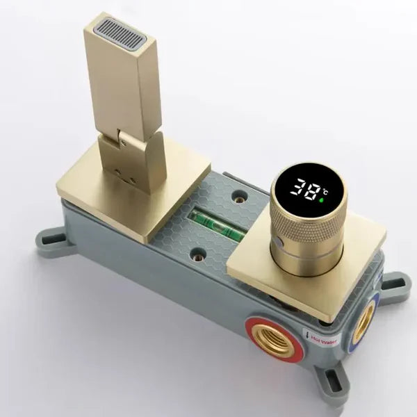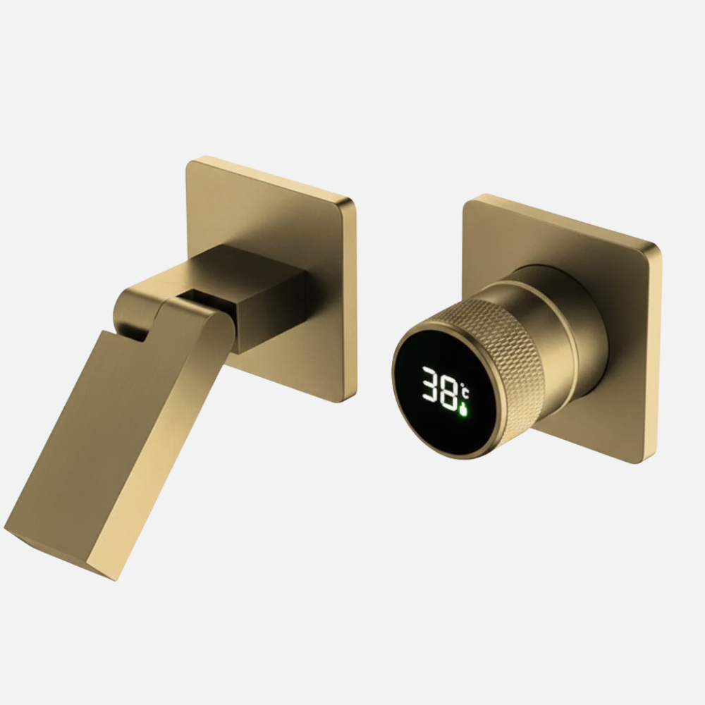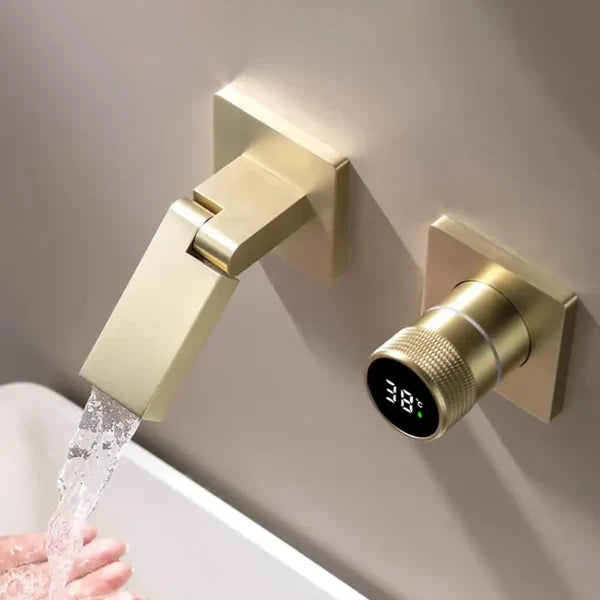 Pensé pour les amateurs de lignes épurées, ce robinet mural encastrable doré mise sur un design pivotant et une technologie moderne pour sublimer votre lavabo. Son mitigeur intégré affiche la température de l’eau en temps réel, offrant une utilisation intuitive et un confort optimal. Grâce à sa tête pivotante et à sa finition dorée élégante, il s’intègre parfaitement dans une salle de bain contemporaine tout en ajoutant une note sophistiquée. Son installation murale permet une esthétique minimaliste et parfaitement harmonieuse.