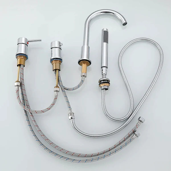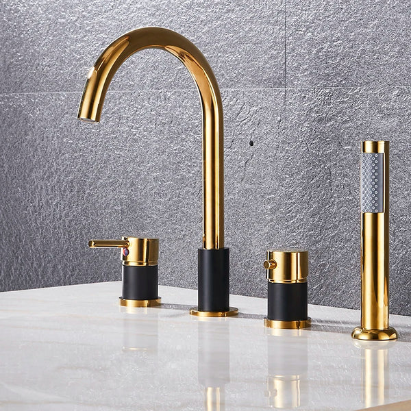 Découvrez l'élégance du robinet baignoire encastrable douchette doré, fusionnant finesse et modernité. L'alliance du doré et du noir confère un style chic et contemporain. Cet ensemble en laiton comprend robinet, douchette, mitigeur et poignée de commutation, tous conçus pour un montage encastré épuré. Avec sa valve en céramique et son design brillant ou brossé, il associe esthétique et fonctionnalité pour votre baignoire.