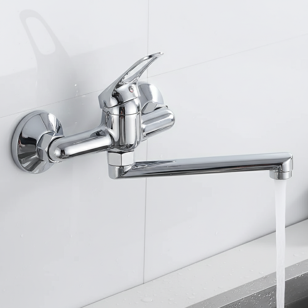 Ce robinet mitigeur mural pour cuisine est une solution pratique et intemporelle pour équiper votre espace sans complication. Facile à installer directement au mur, ce mitigeur cuisine argenté libère le plan de travail tout en offrant une utilisation fluide et confortable. Son bec rotatif s’adapte aussi bien à un évier simple qu’à une double vasque, garantissant une grande liberté de mouvement au quotidien. Conçu avec un corps en laiton de qualité et doté d’une finition argentée résistante et facile d’entretien, ce robinet mural est pensé pour durer dans le temps. Son mousseur intégré permet de réduire la consommation d’eau tout en conservant un jet régulier, faisant de ce mitigeur évier mural un choix fiable, fonctionnel et sans prise de tête pour votre cuisine.