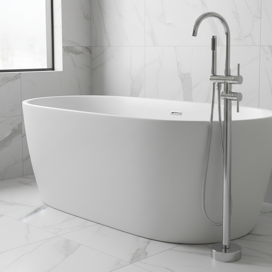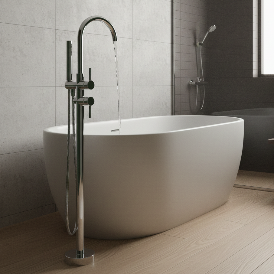 Apportez une note raffinée à votre salle de bain avec ce robinet de baignoire en laiton argenté chromé, conçu pour un montage au sol. Sa silhouette haute et élégante crée un style distinctif, idéal pour les espaces modernes. Équipé d’un bec classique et d’une douchette pratique, ce modèle offre un contrôle confortable grâce à ses deux poignées. Une solution luxueuse qui transforme le moment du bain en véritable instant de détente.