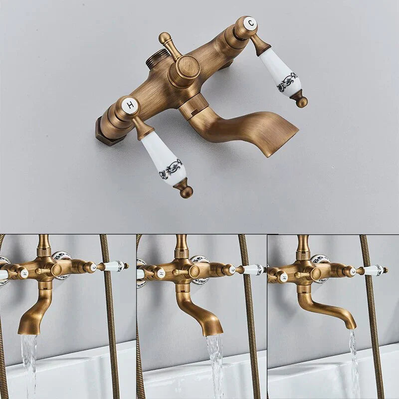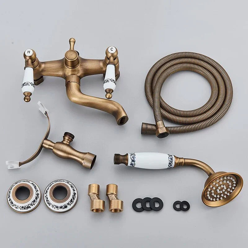 Apportez une touche rétro élégante à votre salle de bain avec ce robinet de baignoire en laiton doré, sublimé par des éléments en céramique décorés d’un motif floral bleu. Son design vintage, disponible en doré brossé, évoque le charme d’antan tout en intégrant une fonctionnalité moderne. Le bec distinctif et rotatif, les poignées séparées pour l’eau chaude et froide, ainsi que la douchette rétro assortie composent un ensemble harmonieux qui rehausse immédiatement votre espace bain. Cette robinetterie salle de bain est pensée pour un usage quotidien alliant confort, fiabilité et longévité.