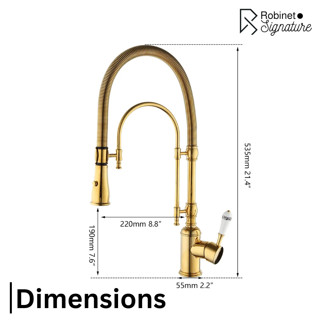 Apportez du caractère à votre espace grâce à ce robinet mitigeur pour cuisine rétro en laiton doré brillant, doté d’une poignée en céramique blanche ornée de délicates fleurs bleues. Conçu pour allier esthétisme vintage et fonctionnalité moderne, il offre une expérience d’utilisation polyvalente. Son mitigeur permet de régler précisément le débit et la température, tandis que sa douchette flexible à deux modes d’écoulement — classique et multijet — optimise l’efficacité au quotidien. Sa hauteur généreuse et sa rotation à 360° apportent un confort remarquable, tout en ajoutant une touche décorative unique à votre évier.