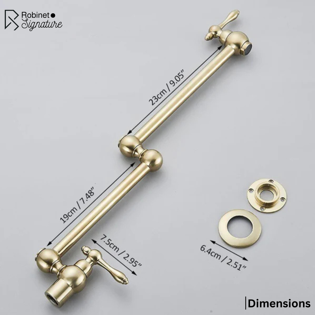 Apportez une note rétro élégante à votre espace avec ce robinet mitigeur pour cuisine rabattable mural encastrable en laiton doré brossé. Pensé pour offrir un maximum de fonctionnalité dans un minimum d’espace, il se replie entièrement contre le mur lorsque vous ne l’utilisez pas. Ses deux poignées situées aux extrémités permettent un contrôle simple et précis du débit. Sa rotation complète à 360° assure une grande liberté de mouvement, idéale pour les cuisines compactes. Ce modèle est conçu pour alimenter uniquement en eau froide et n’est pas livré avec les flexibles d’alimentation.