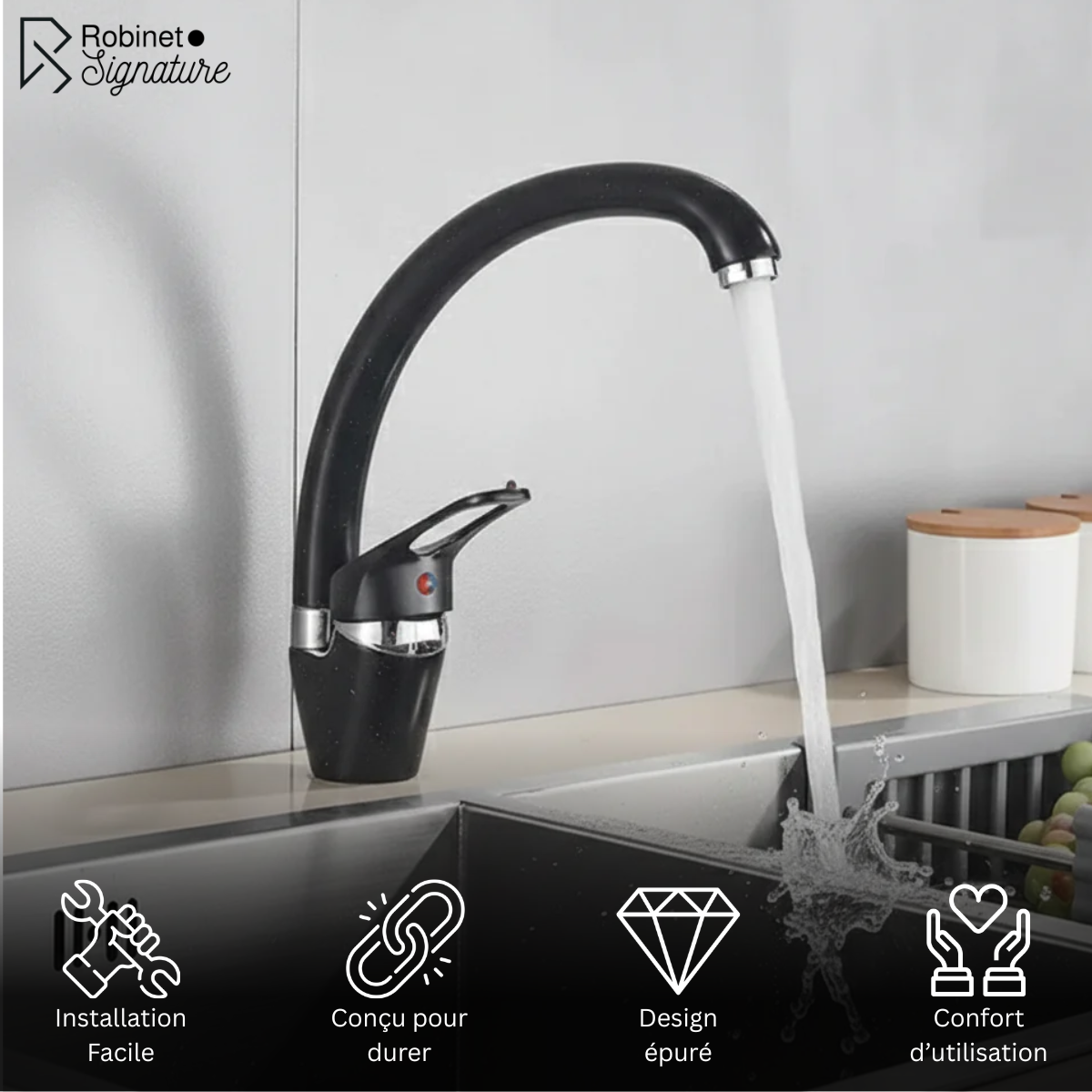 Chez RobinetSignature, nous concevons des robinets de cuisine qui allient design soigné, fiabilité durable et simplicité d’installation, pour accompagner votre cuisine, sans stress ni mauvaise surprise.