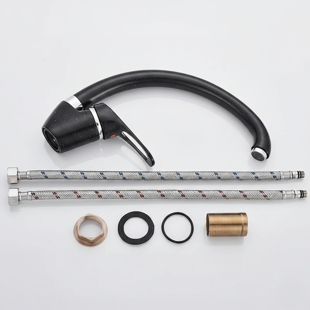Redonnez du caractère à votre cuisine avec ce robinet d'évier au design tacheté unique, inspiré des années 80-90. Sa finition noire mouchetée et sa forme arquée en font un élément décoratif marquant, tandis que le mitigeur et le mousseur assurent un contrôle précis du débit et de la température, alliant style rétro et performance moderne. Pensé pour un usage quotidien, ce mitigeur pour cuisine associe robustesse, confort et longévité.