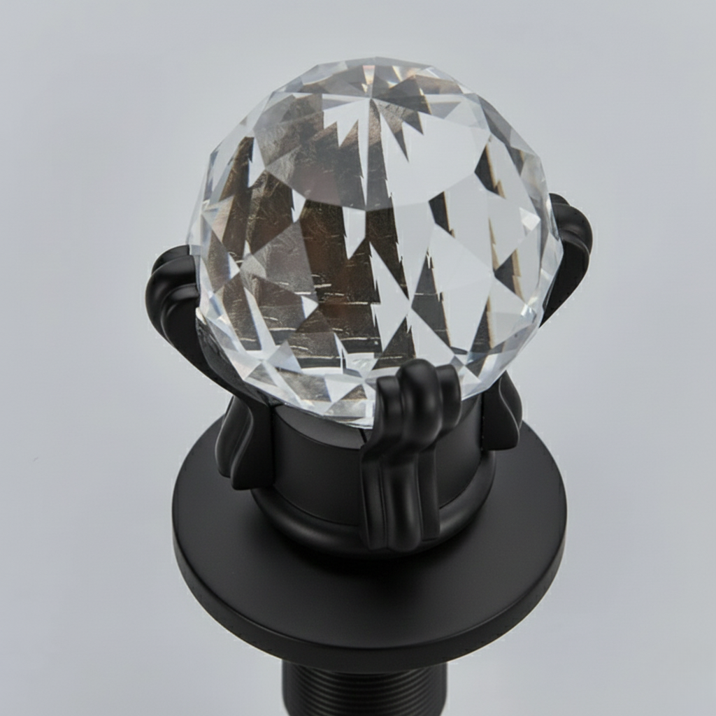Pensé comme un véritable élément décoratif, ce robinet de lavabo à poignées déportées apporte une allure baroque et sophistiquée à votre salle de bain. Sa finition noir mat en laiton lui confère une présence élégante, tandis que ses poignées en sphères transparentes travaillées introduisent une note chic et distinctive. Conçu pour les grandes vasques, il allie esthétisme affirmé et installation simple grâce à son filetage mâle 1/2. Sa valve en céramique garantit une utilisation fluide et durable au quotidien. Cette robinetterie salle de bain a été développée pour accompagner votre quotidien avec fiabilité et confort.