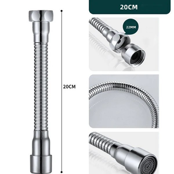 Découvrez notre Rallonge de robinet rotatif flexible aérateur d'eau en couleur Argenté. Fabriquée en acier inoxydable de haute qualité et finie en argenté chromé, cette rallonge offre une flexibilité sans pareil. Grâce à sa capacité de rotation à 360 degrés, atteignez les zones difficiles de votre évier avec facilité. Équipée d'un aérateur, elle permet une meilleure utilisation de l'eau. Adaptable à tous les types de robinets avec un filetage femelle de 22 mm, elle est également disponible en trois tailles différentes (20, 30 ou 50 cm) pour répondre à tous vos besoins.